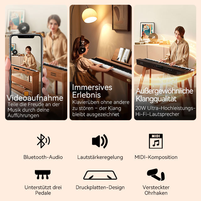 TERENCE P37 Piano numérique portable 88 touches lestées avec mécanique à marteaux