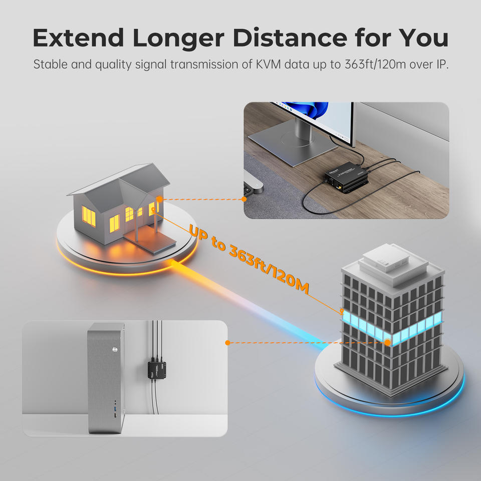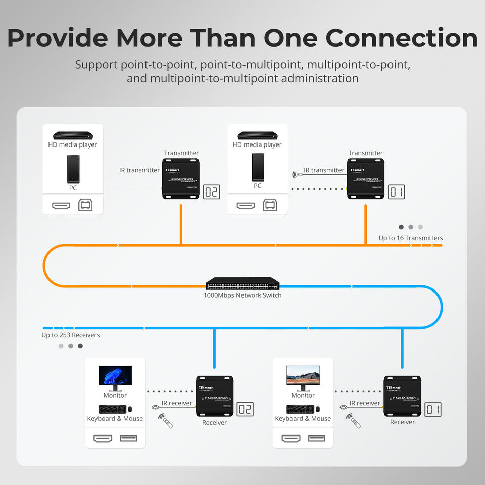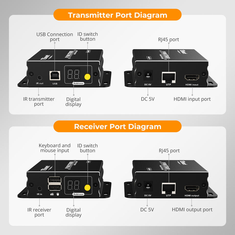Extenseur KVM HDMI TESmart 1080P 60Hz 120m 393ft Multipoint à Multipoint Contrôle IR à Distance Transmetteur et Récepteur Vidéo
