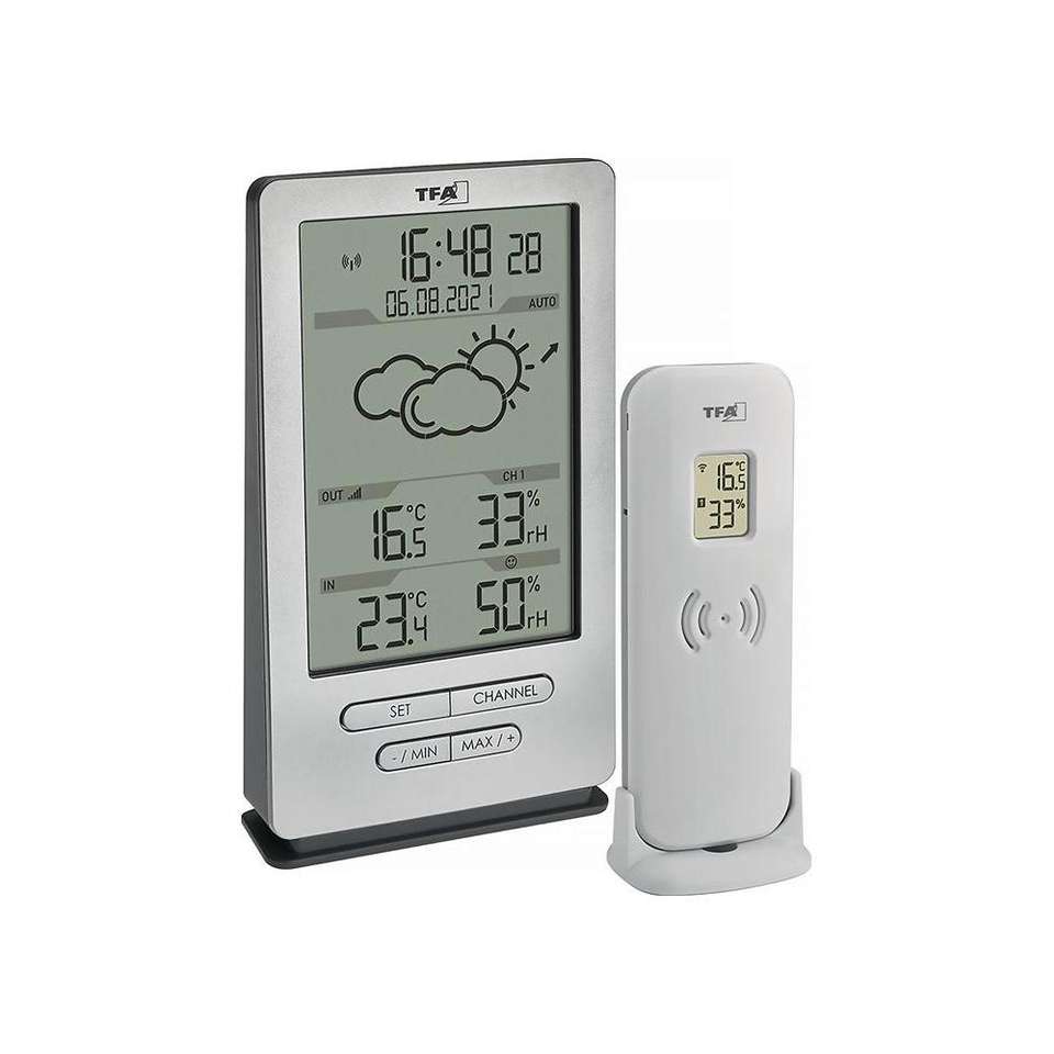 TFA Radio weather station XENA H145xW82xD47 mm silver plastic for indoors/outdoors with symbols and air press. trend