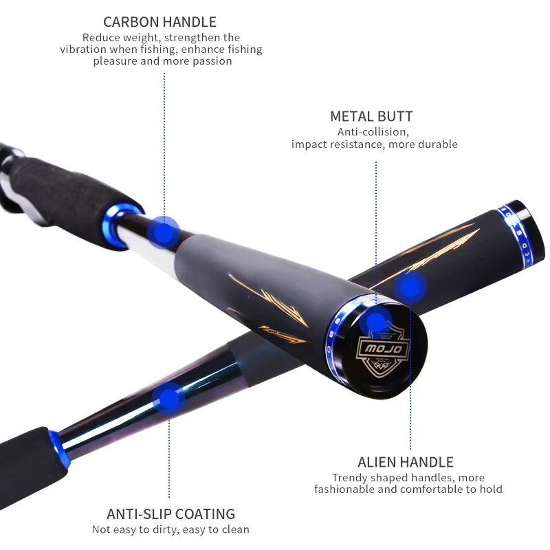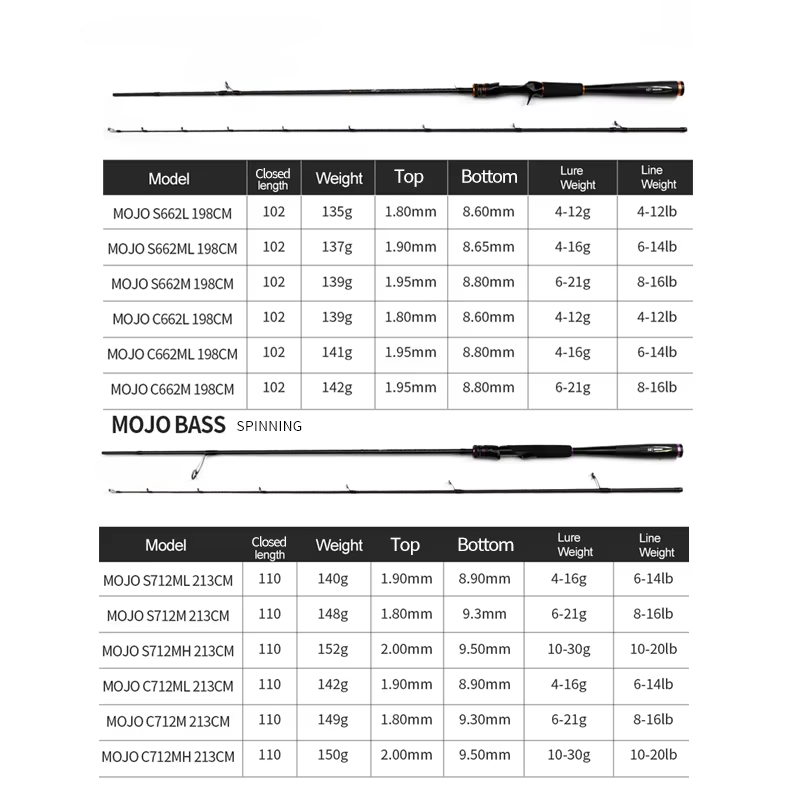 Canne à pêche TGD Best MOJO BASS 2 sections pour la pêche au bar en mer 1.98m 2.13m 2.28m M/MH/ML en fibre de carbone 36T pour la pêche à la ligne et au lancer