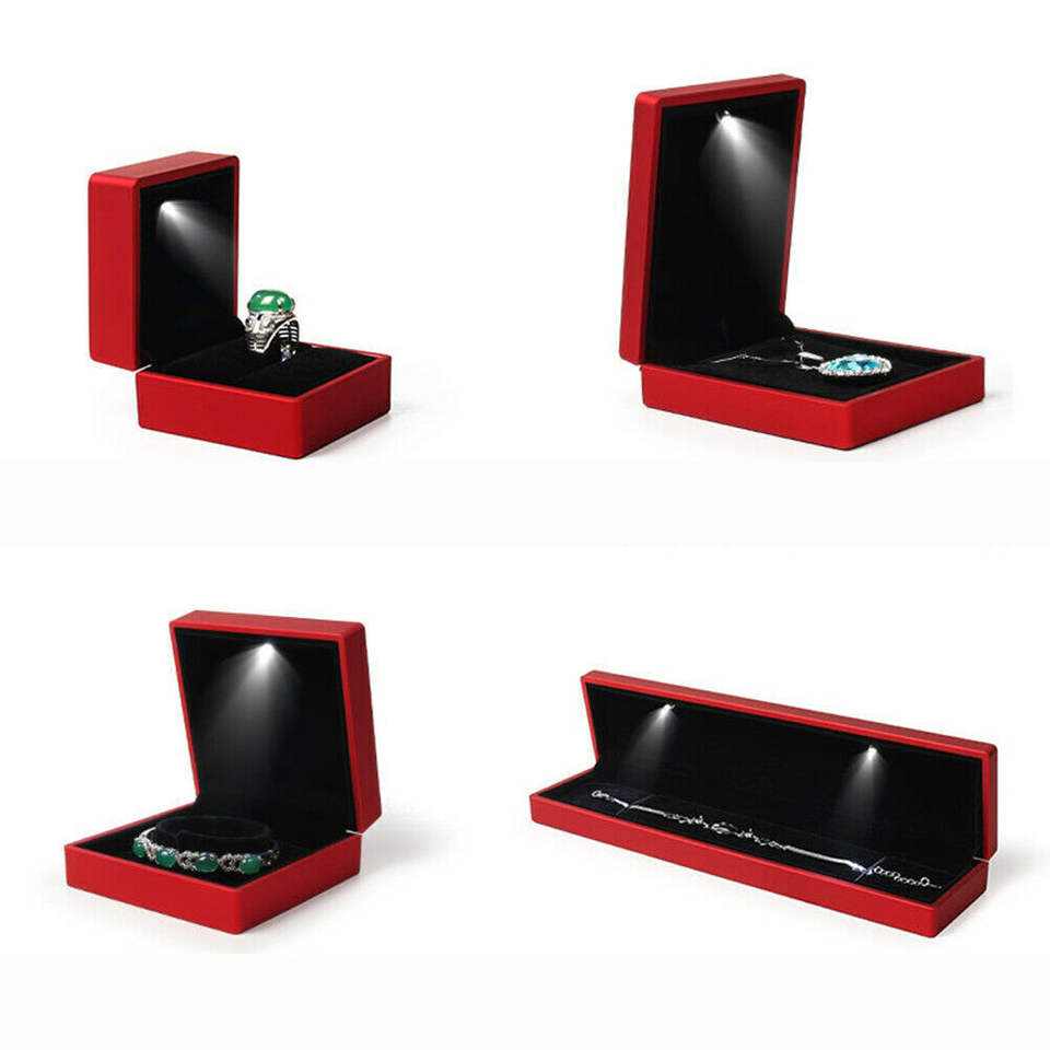 TH CB-075 Boîte à bijoux de présentation de conception moderne avec lumière LED pour bague, boîte cadeau en papier pour mariage et anniversaire