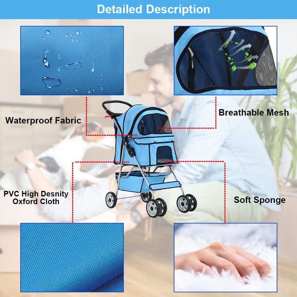 TH-PPS-142 Three Wheel Pet Stroller with Foldable Setup Smooth Zipper Entry and Comfort Handles Custom Print and Logo