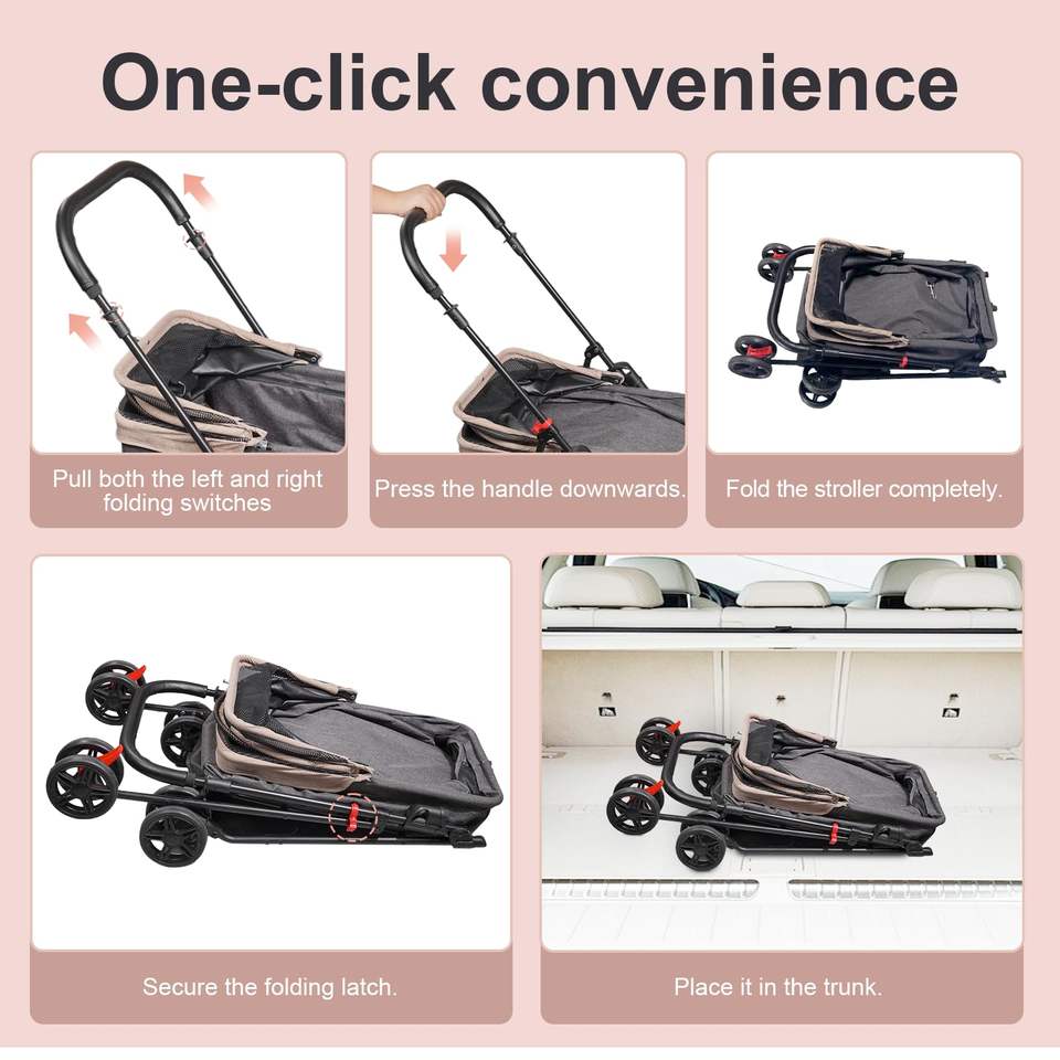 Poussette ergonomique TH-PPS-241 pour animaux de compagnie pour le voyage avec cadre pliant fenêtres respirantes et rembourrage amovible personnalisé accepté
