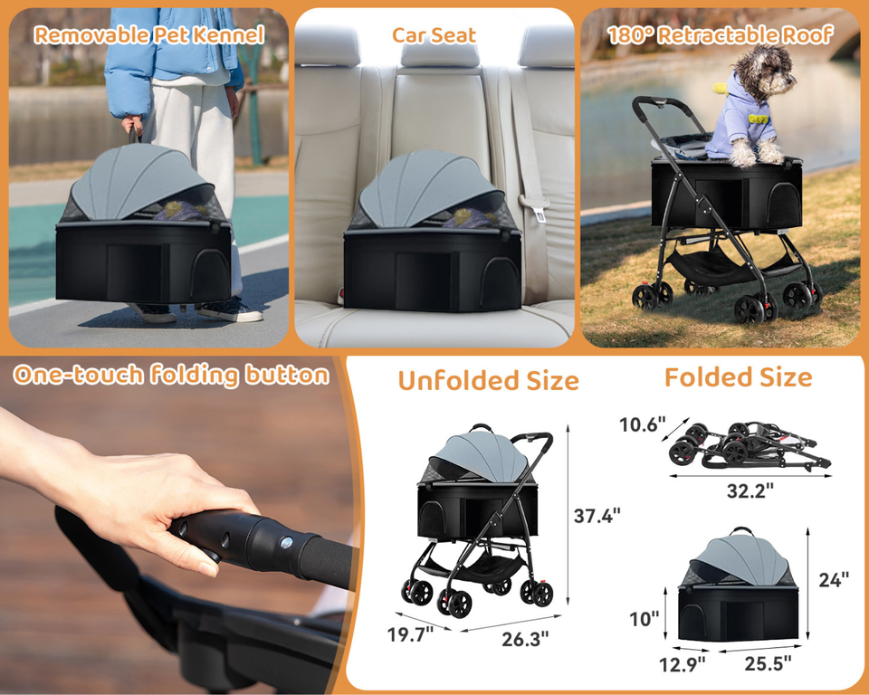 Poussette pour animaux de compagnie à quatre roues pliable en plein air TH-PPS-319 avec panier de rangement pour un usage quotidien