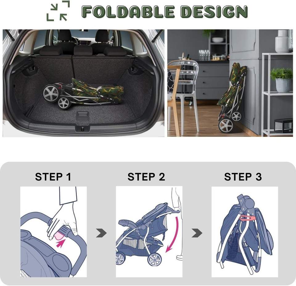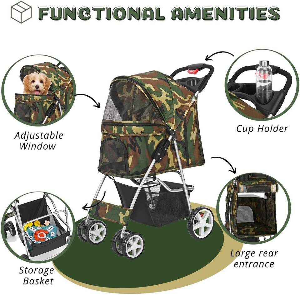 Poussette pour animaux de compagnie de conception américaine TH-PSP-243 avec cadre en acier durable et sac à 4 roues compatible avec la voiture et les animaux