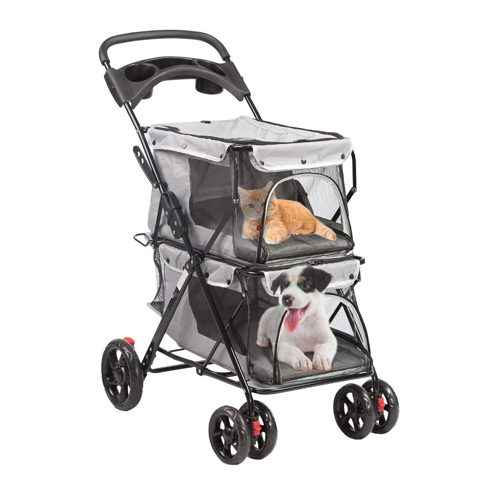 Poussette pour animaux de compagnie au design de luxe TH-PSP-362 Tissu Design Rotation 3 roues Confort Poussette pour chien moyen