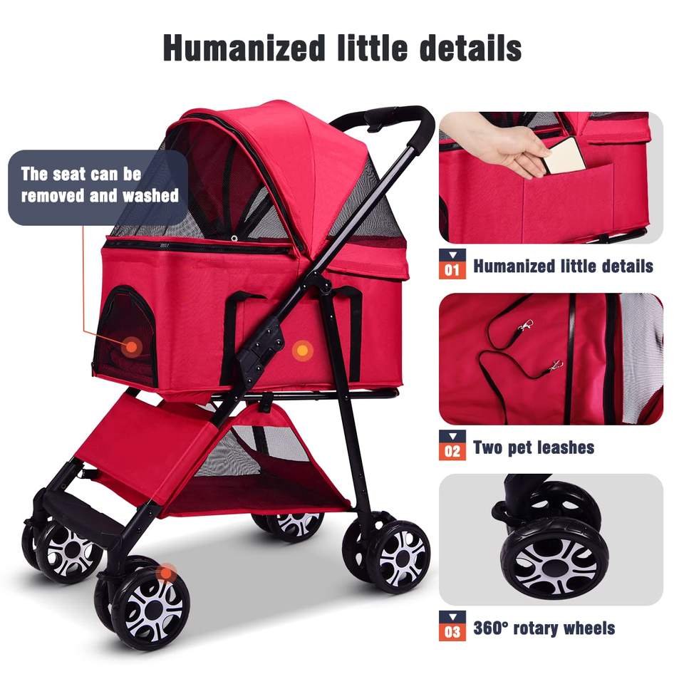 TH-PSP-450 Customs Pet Stroller for Convenience and Mobility Effortless Cat and Dog Pet Carrier Storage Compartment