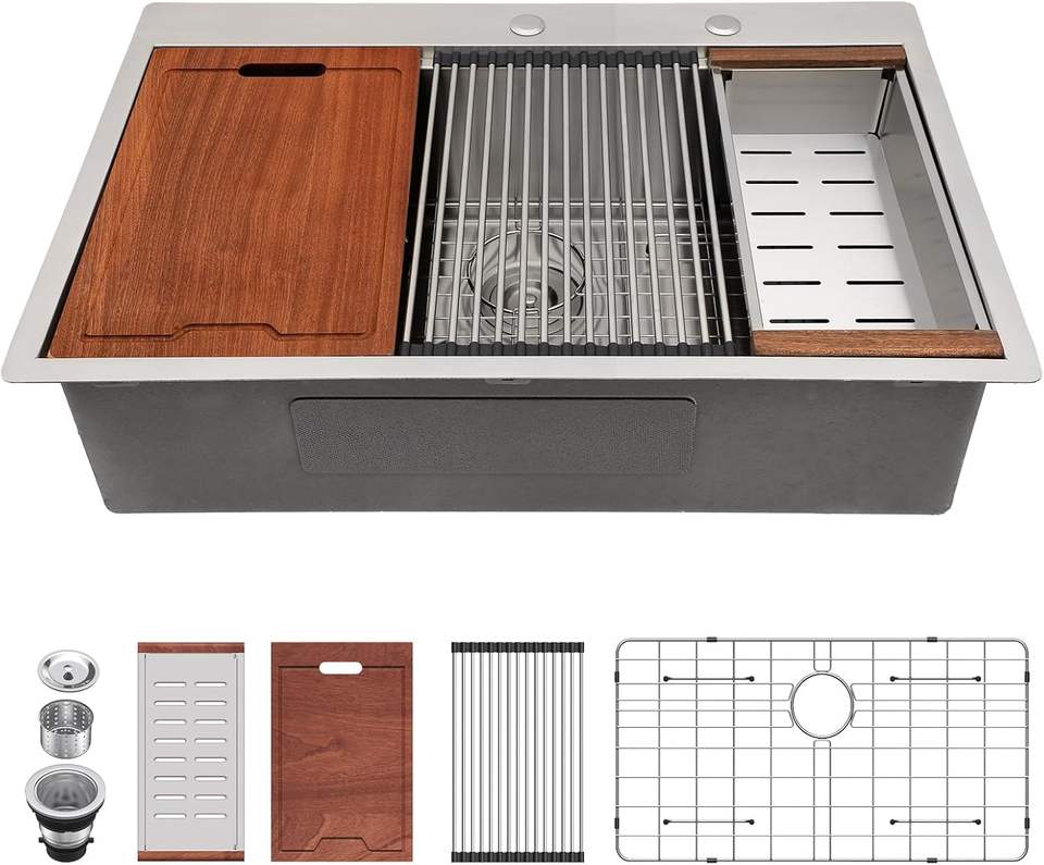 Évier de cuisine en acier inoxydable THCSS-0545 fait à la main, grand bassin insonorisé, avec fonctions de poste de travail, idéal pour les maisons de luxe