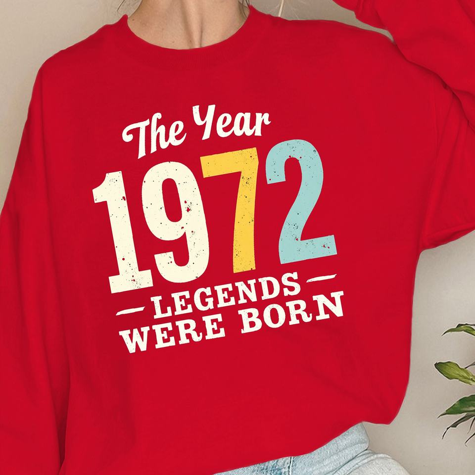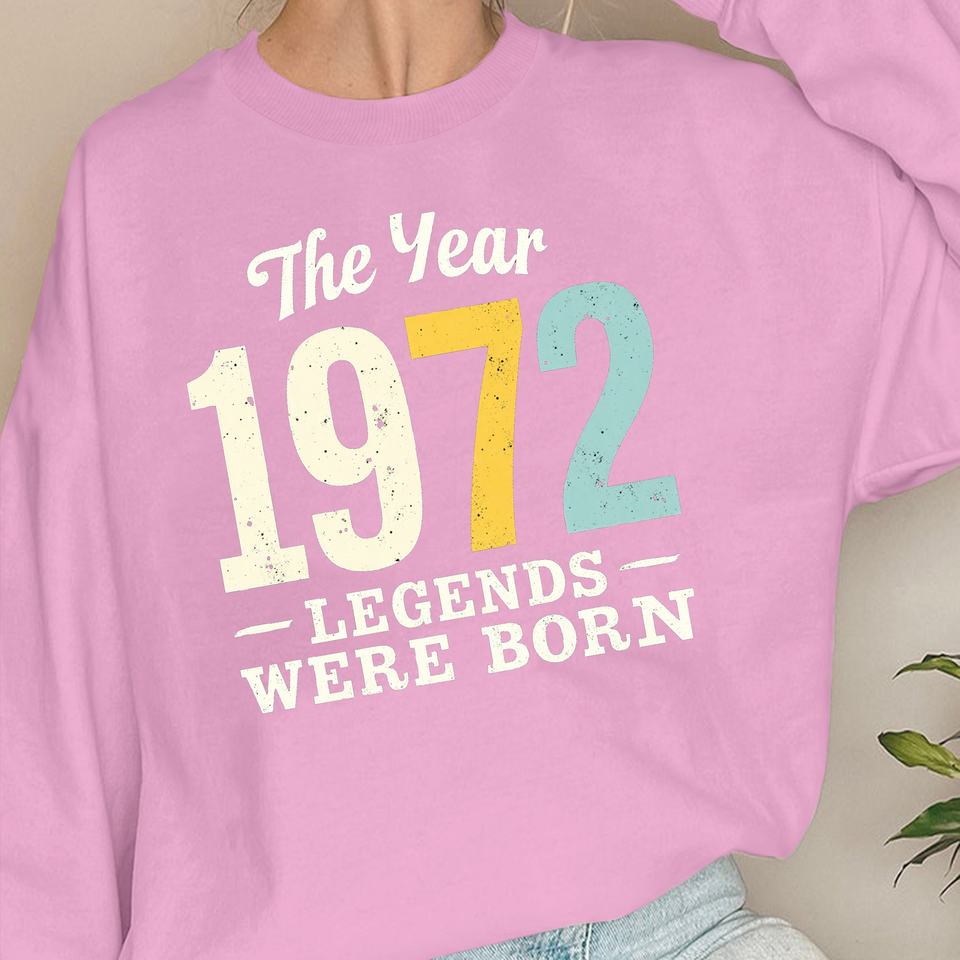 THE YEAR 1972 LEGENDS WERE BORN women's sweatshirts