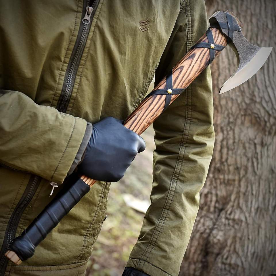 THEWIZCRAFTS Hache nordique à barbe artisanale de qualité industrielle inspirée de Ragnar Lothbrok Hache de camping avec manche en bois de rose Tête d'hache