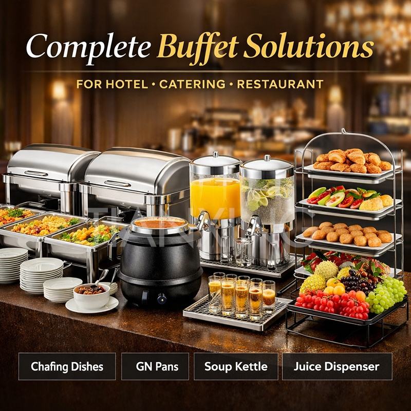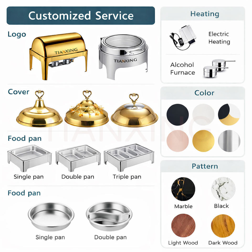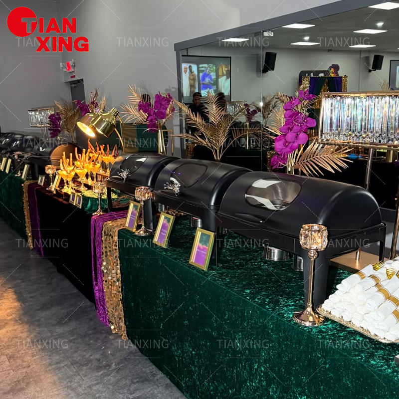 Réchaud de buffet TIANXING noir avec couvercle transparent à rouleau, équipement commercial pour buffet