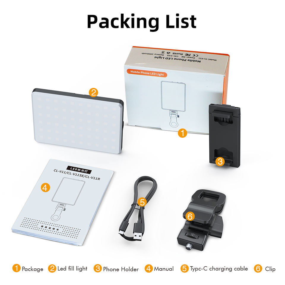 TIKTOK Best-seller Lumière LED pour selfie de téléphone portable 3 couleurs 10 niveaux avec clip support de téléphone pour iphone Lumière vidéo de photographie