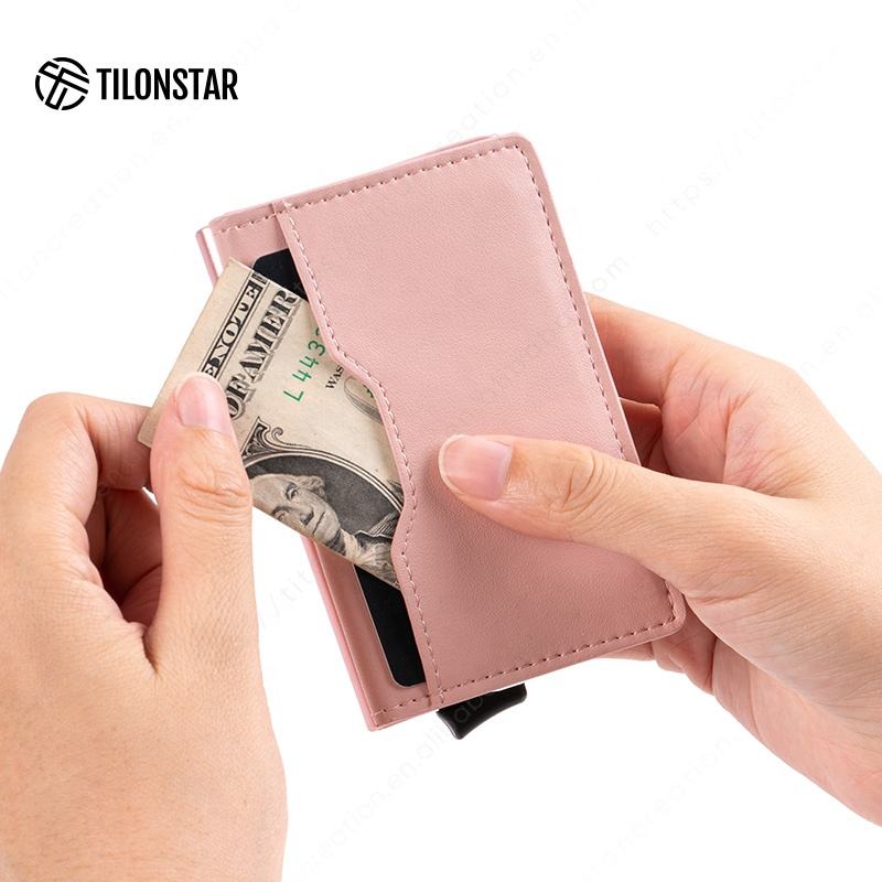TILONSTAR TVC109 Porte-cartes en métal et aluminium à poche mince Porte-cartes en cuir RFID Porte-cartes pop up