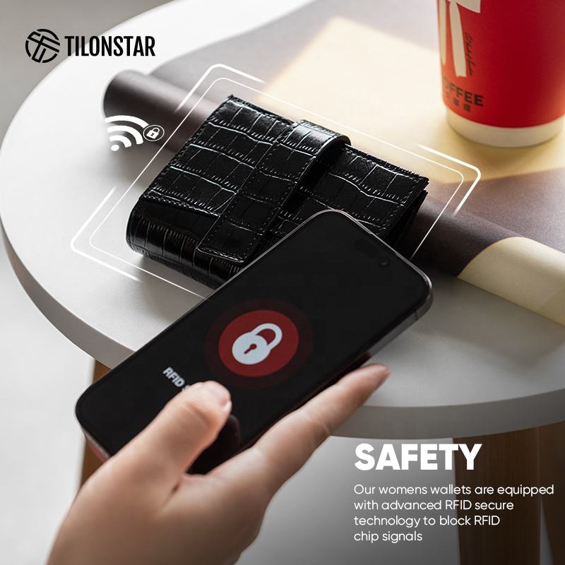Portefeuille pour cartes de crédit TILONSTAR TVW134 en cuir de crocodile de qualité supérieure, motif crocodile, pour femmes, plusieurs emplacements pour cartes, portefeuille RFID