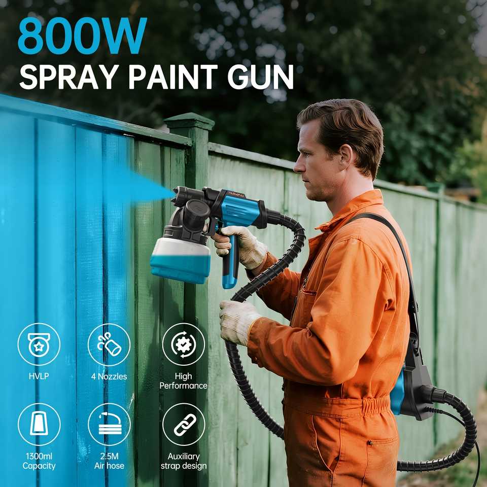 Pistolet à peinture portable TILSWALL 800W HVLP avec réservoir de 1300 ml, 4 buses et 3 modes de pulvérisation pour la peinture de la maison et des meubles en DIY