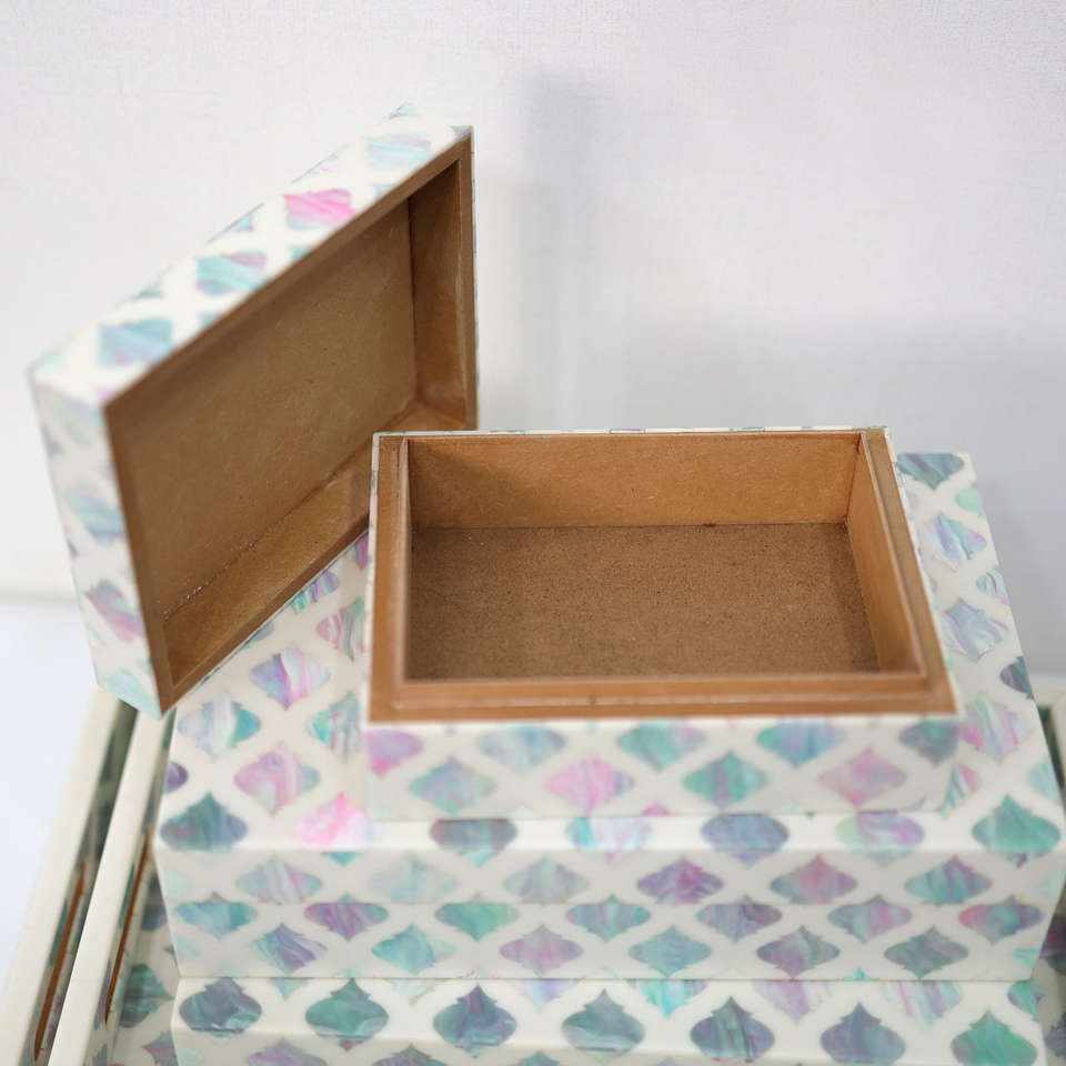 Boîte de rangement pour bijoux décorative géométrique rectangulaire en nacre blanche et verte, artisanat intemporel, incrustation de coquille de nacre