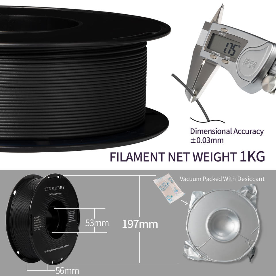 Filament d'imprimante 3D TINMORRY 1,75 mm, filament PETG écologique, PLA/ABS/PETG/ASA/TPU, 1 kg/rouleau, tiges en plastique PAHT-CF