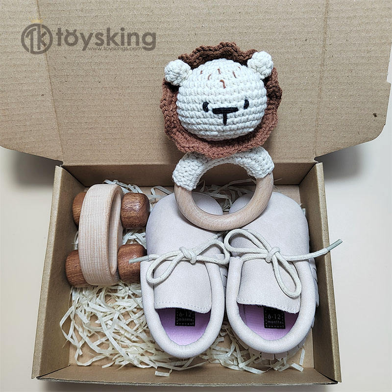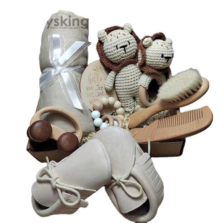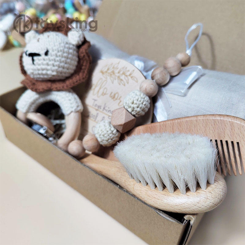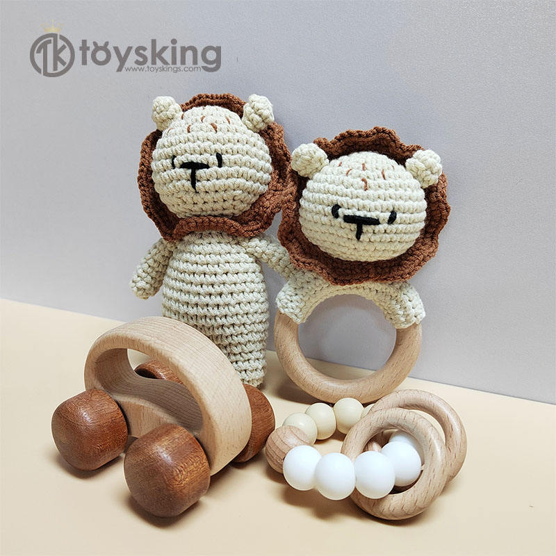 TK bébé fait à la main 100% Crochet Lion Amigurumi peluche brosse de dentition en bois nouveau-né bulle Bracelet confort sommeil Animal hochet