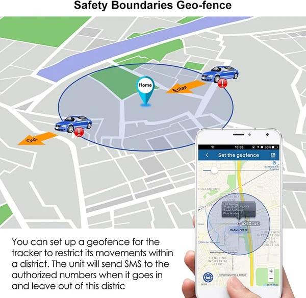 Imperméable, Alarme de géo-clôture, GSM quadribande, Enregistrement des points de passage historiques, Localisation à distance, positionnement, suivi en temps réel, Partage de localisation, batterie de grande capacité, Batterie de grande capacité avec une longue autonomie en veille., longue durée de veille, Alarme de vibration, Suivi via l'application mobile, Surveillance vocaleFonction