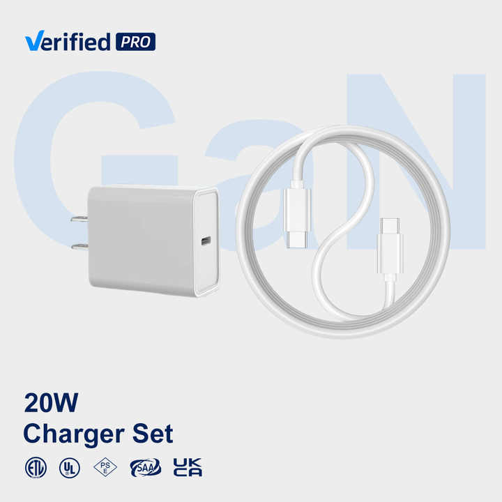 Chargeur Mural Rapide USB-C TKT 20W PD OTP OVF avec Câble pour Ordinateur Portable, Écouteurs, Appareils Intelligents, Appareil Photo, Prises US/EU