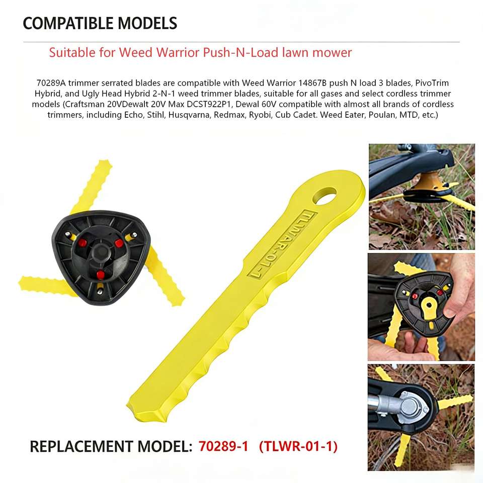 Lame de rechange TLWAR-01 70289A pour tondeuse à gazon sans fil hybride Weed Warrior PivoTrim Ugly Head Craftsman, ABS jaune