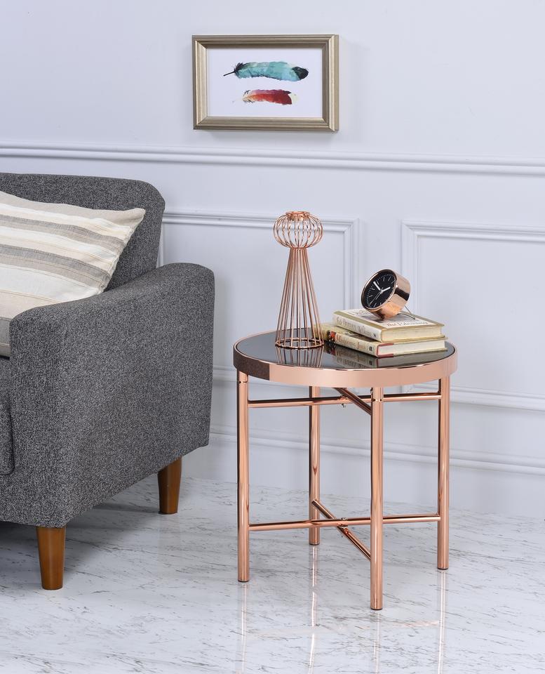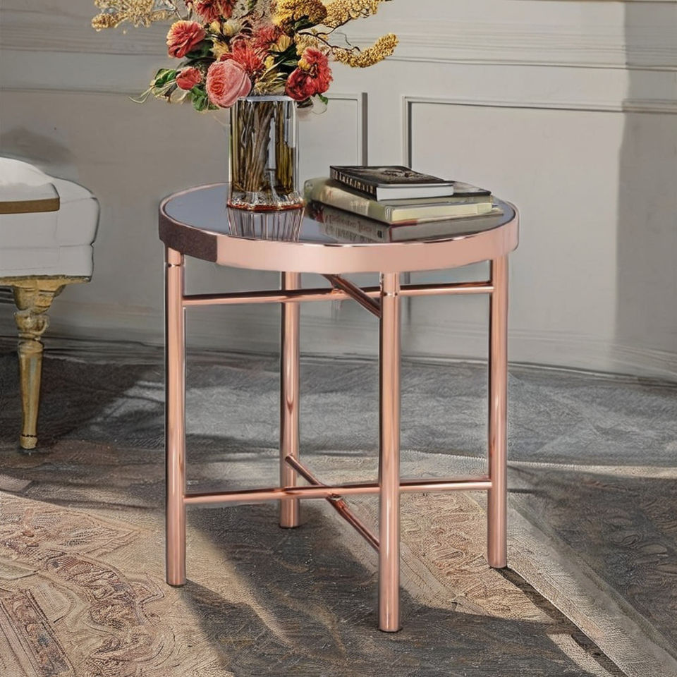 Table basse ronde moderne en verre trempé TMG-K26 avec structure en fer pour salon, canapé et chevet
