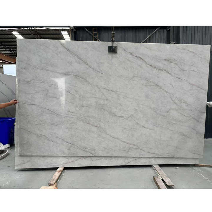 Carreaux d'intérieur modernes TMZ 7011 Taj Mahal PD en quartz artificiel gris imprimé, découpés sur mesure, polis, imperméables et antidérapants