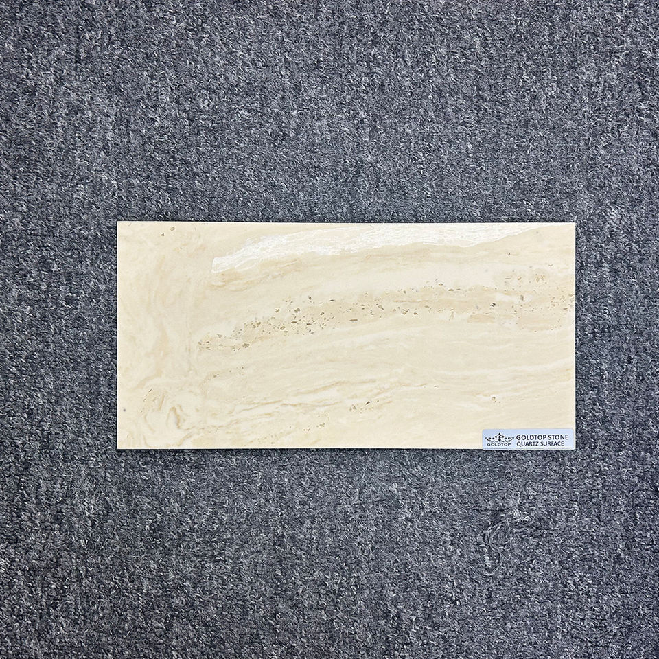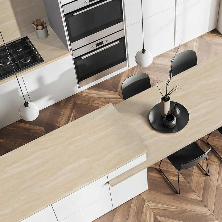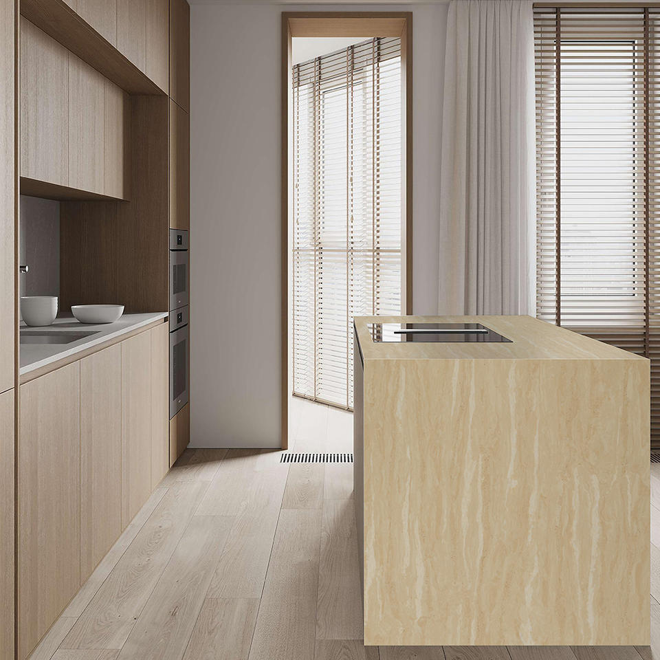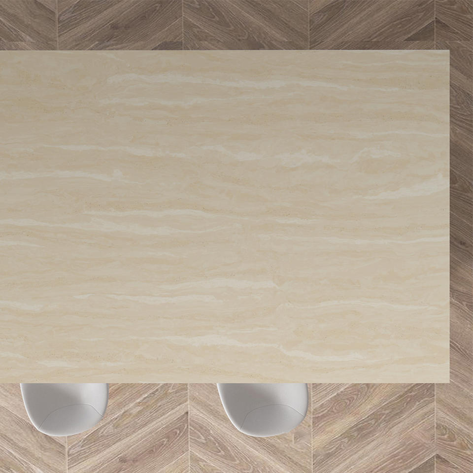 Comptoir en surface solide TMZ pour salle de bain et cuisine modernes, 6040, travertin romain, quartz Calacatta, poli, grande dalle, design 3D