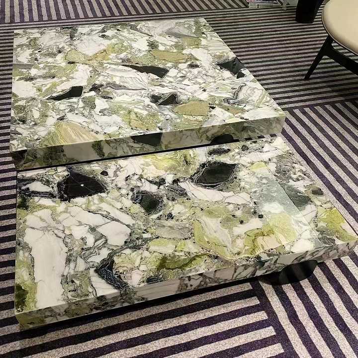 Table basse extensible moderne en marbre émeraude naturel froid TMZ pour la maison et l'hôtellerie