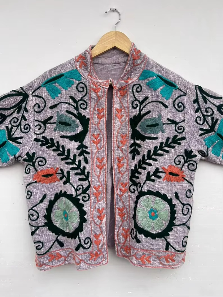 Veste Suzani brodée de fleurs TNT | Manteau réversible en coton biologique écologique pour l'hiver, taille plus | Cadeau vintage pour elle
