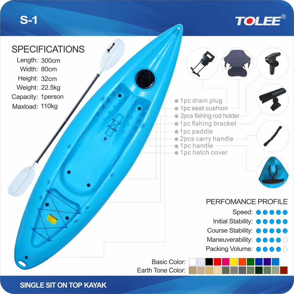 TOLEE Nouvelle arrivée Kayak de pêche de 10 pieds pour les voyages en solo avec un siège rembourré et une excellente traçabilité