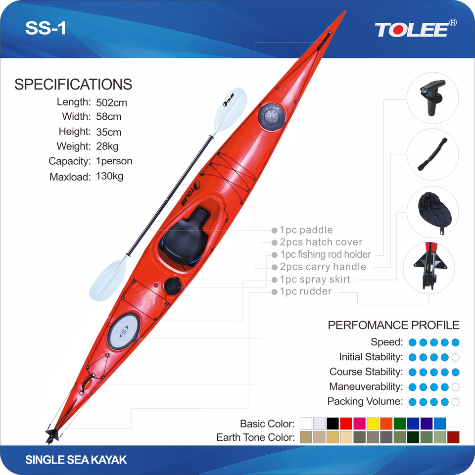 TOLEE Nouvelle Arrivée Construction Kayak de Mer avec une Capacité de Poids Élevée Conçu pour la Pêche et les Courses de Longue Distance