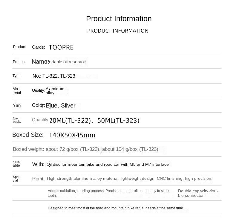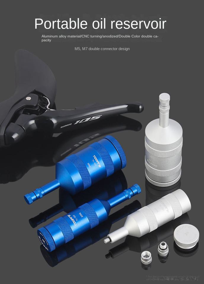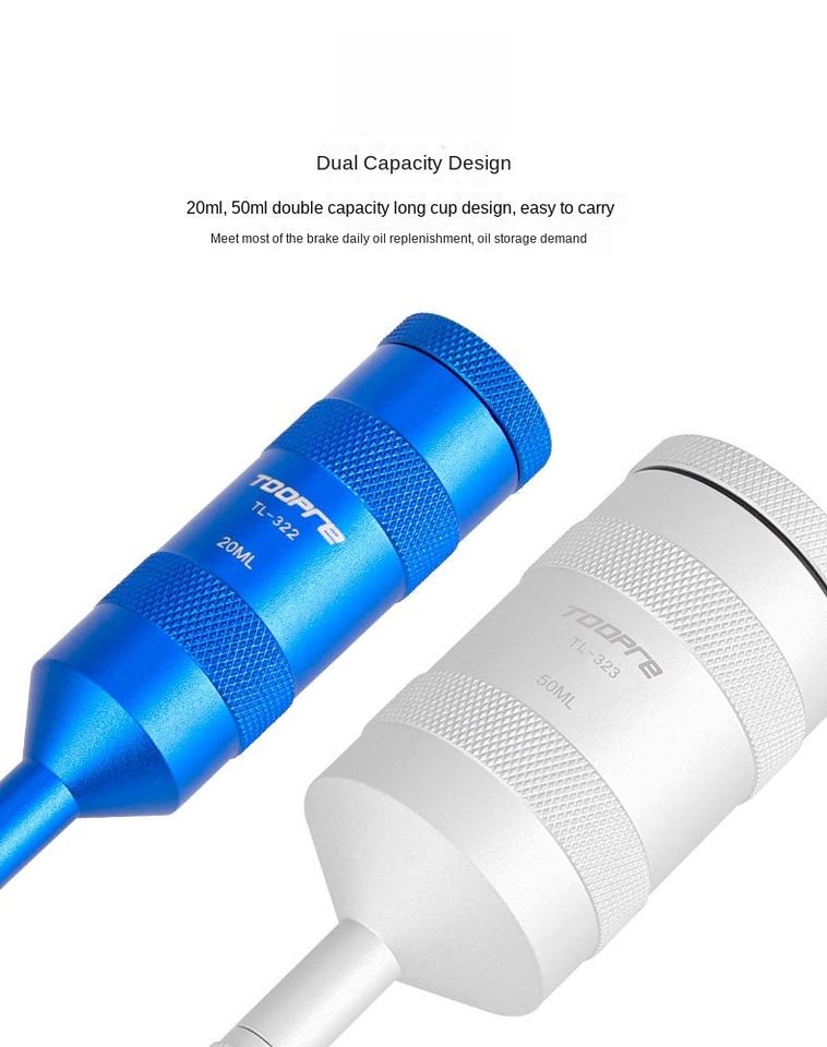 Réservoir d'huile portable en alliage d'aluminium argenté/bleu TOOPRE pour vélos de montagne, outil de remplissage de réservoir d'huile de frein à disque pour l'extérieur