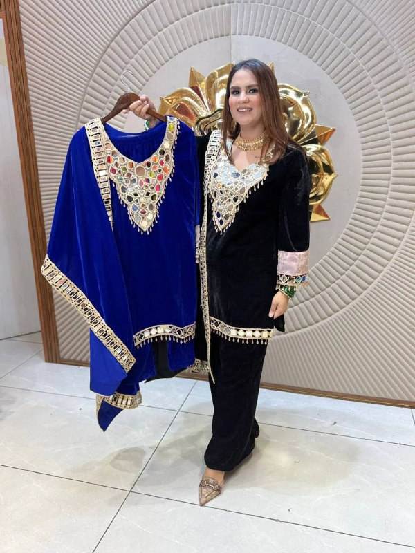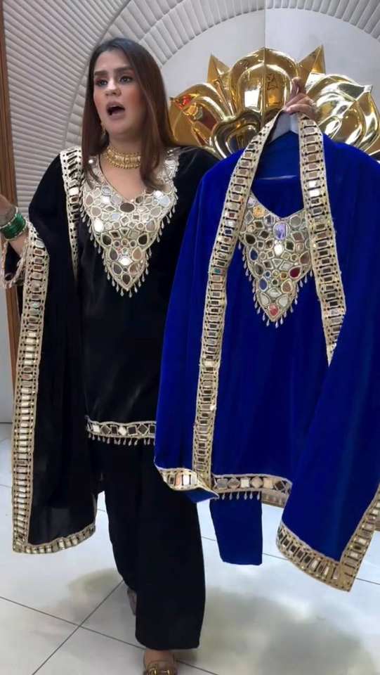 Ensemble de soirée moderne pour femme TOP PLAZZO en velours avec broderie miroir véritable et dupatta