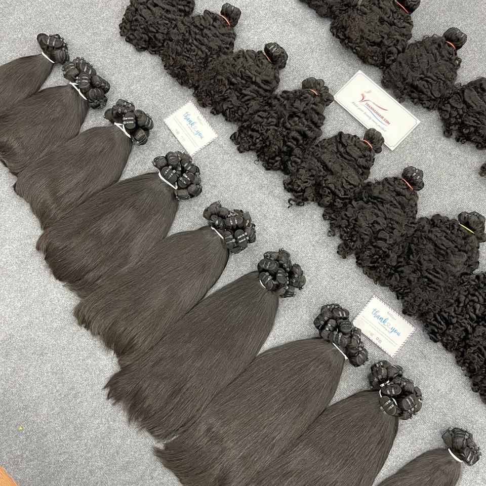 PRODUIT TOP!! Extension de cheveux bouclés à la vapeur trame de machine de couleur noire naturelle prête à expédier super double dessiné