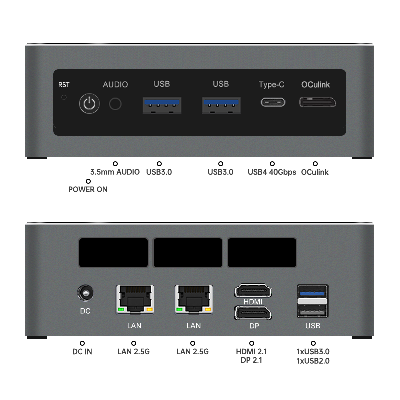Mini PC de jeu TOPC TR9 AMD Ryzen AI 9 HX370 AI, 12 cœurs, 24 threads, 32 Go DDR5, SSD 1 To, avec NPU AMD XDNA 2 et Oculink