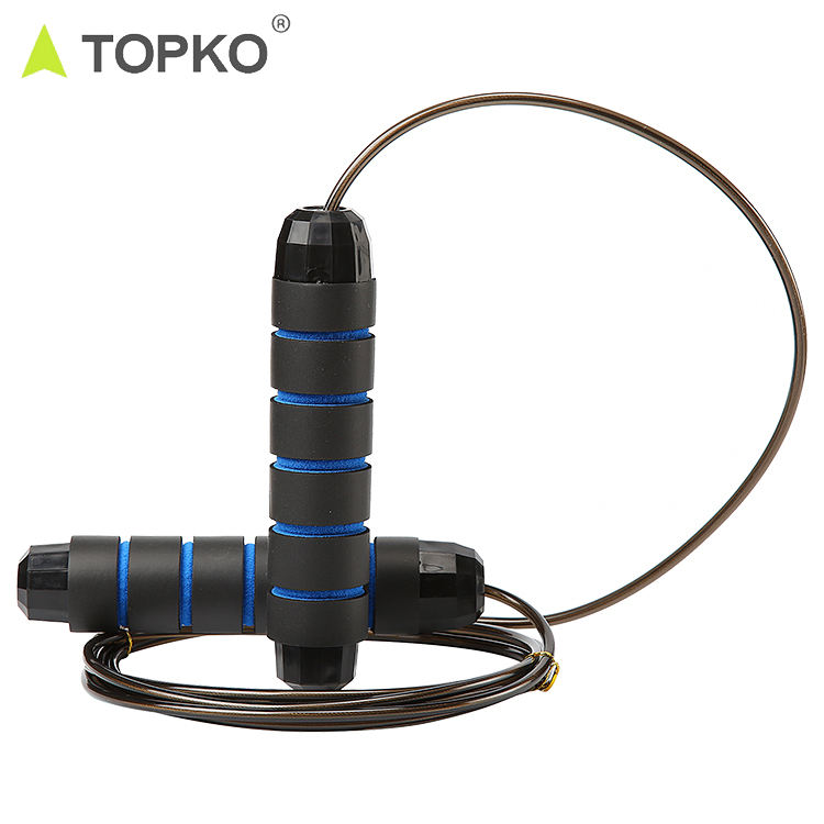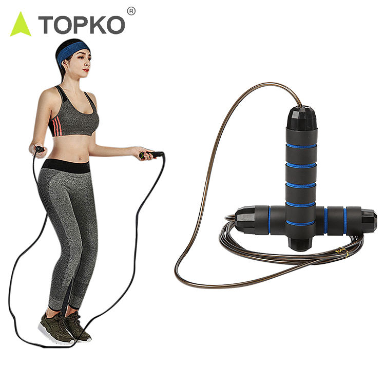 Logo personnalisé TOPKO de 50 pièces de corde à sauter légère en fil d'acier poignée en mousse corde à sauter lestée à grande vitesse réglable
