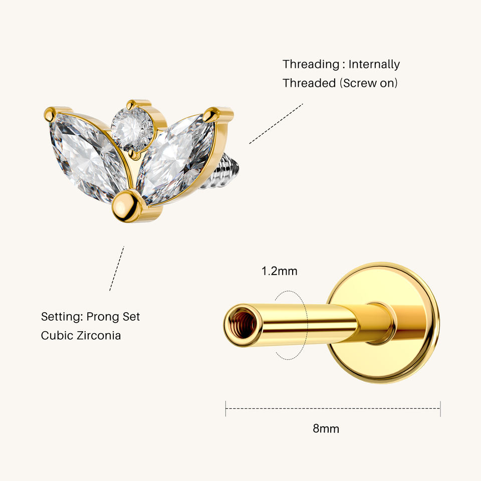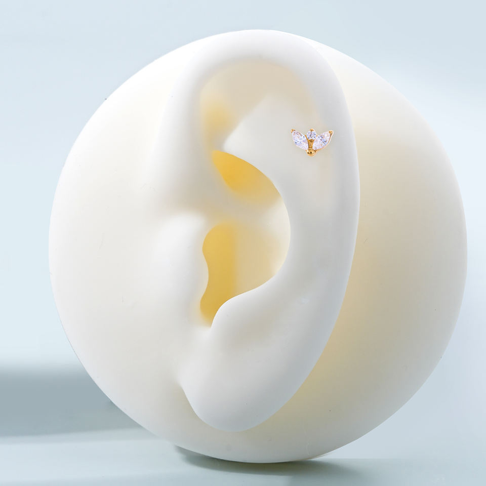 TOPOSH Boucles d'oreilles en zircon coloré, serties de trois griffes, plaqué or 14K, labret en titane à filetage interne pour cartilage et hélix