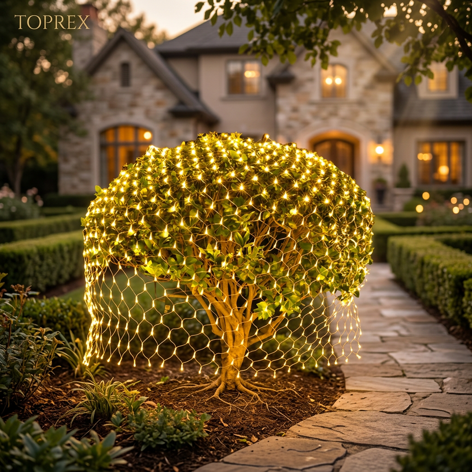 Guirlande lumineuse LED extérieure étanche TOPREX 3x2m en filet pour Noël, décoration féerique pour jardin, arbres, fenêtres et haies