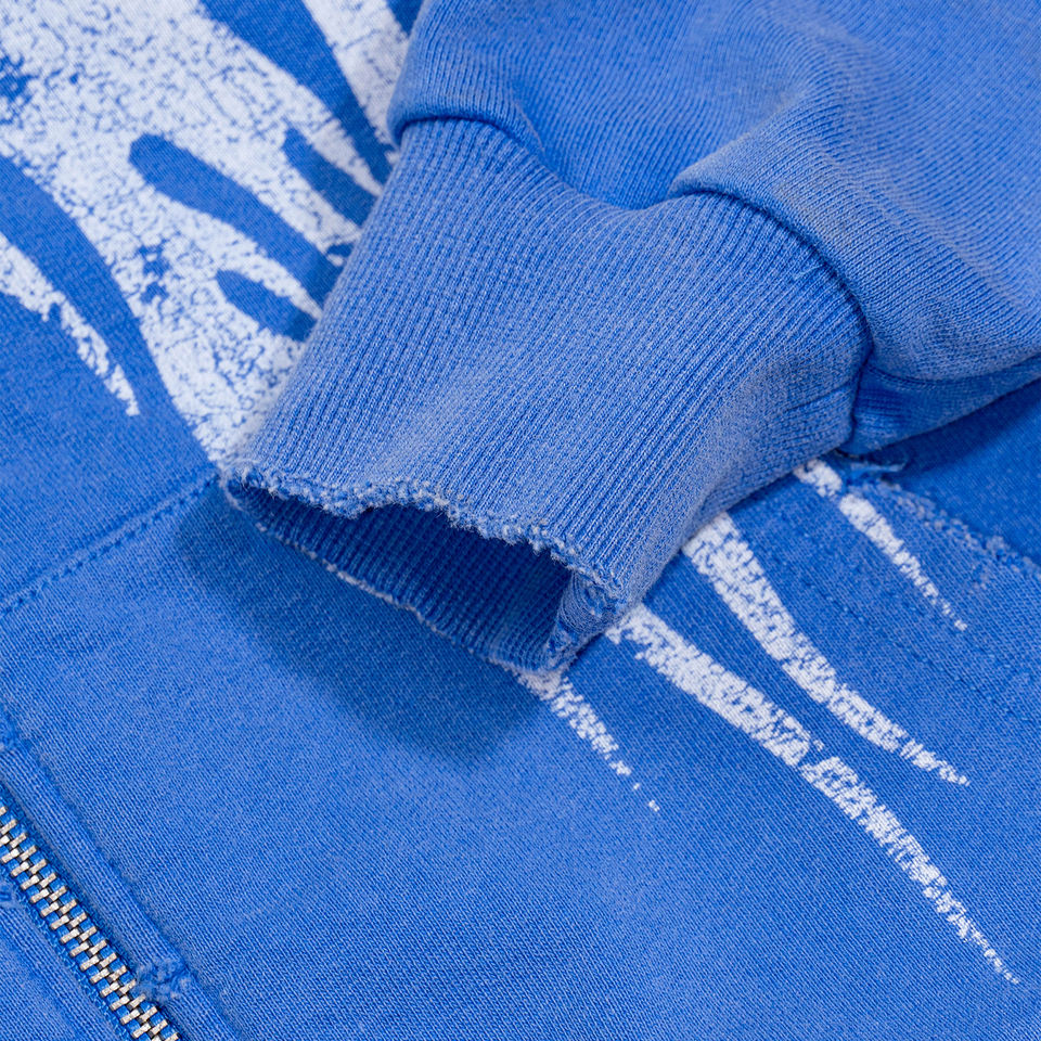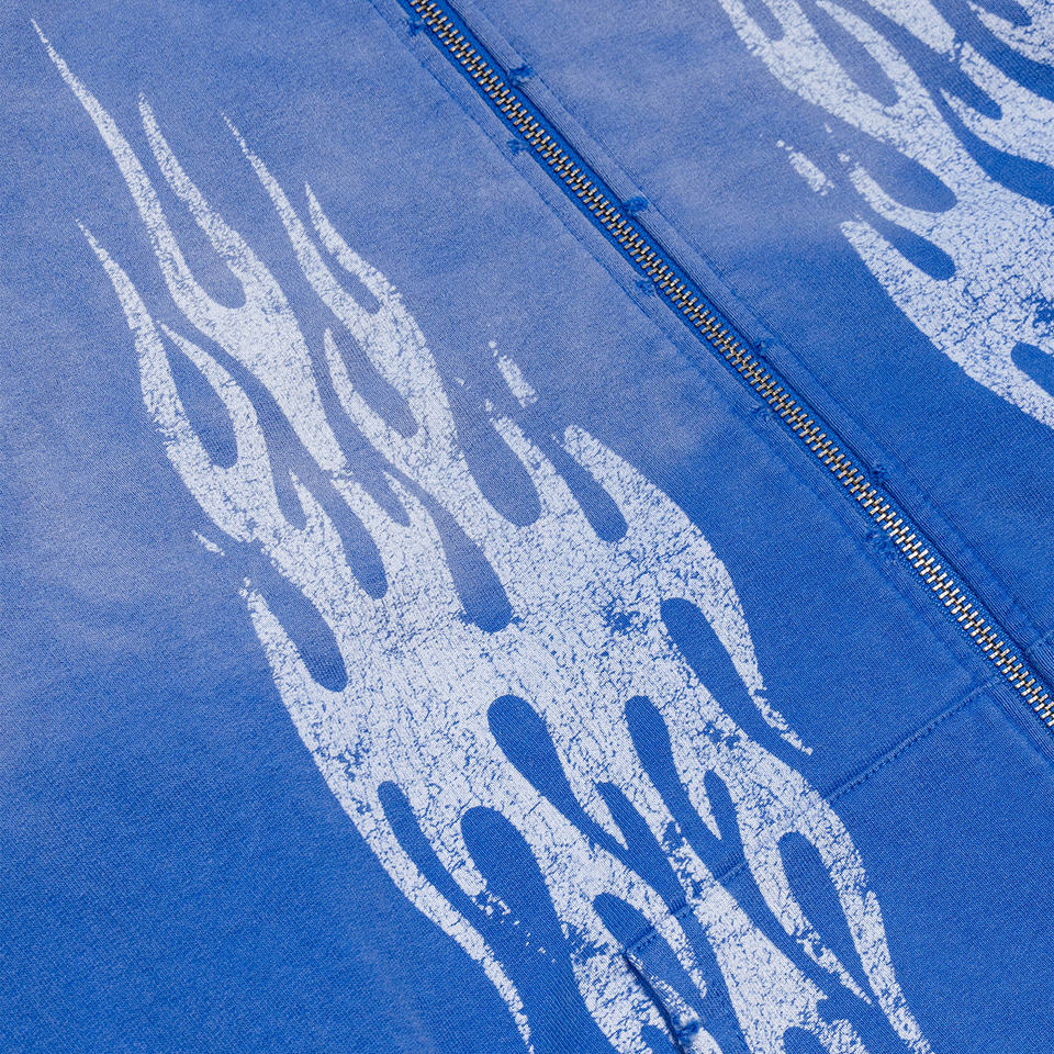 TOPSHOW Sweat à capuche zippé personnalisé avec motif flamme dégradé, impression numérique, en molleton bouclette, effet vieilli et délavé à l'acide