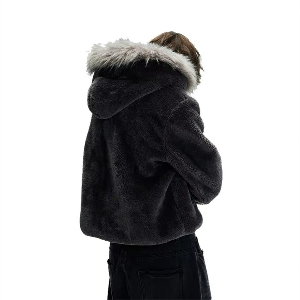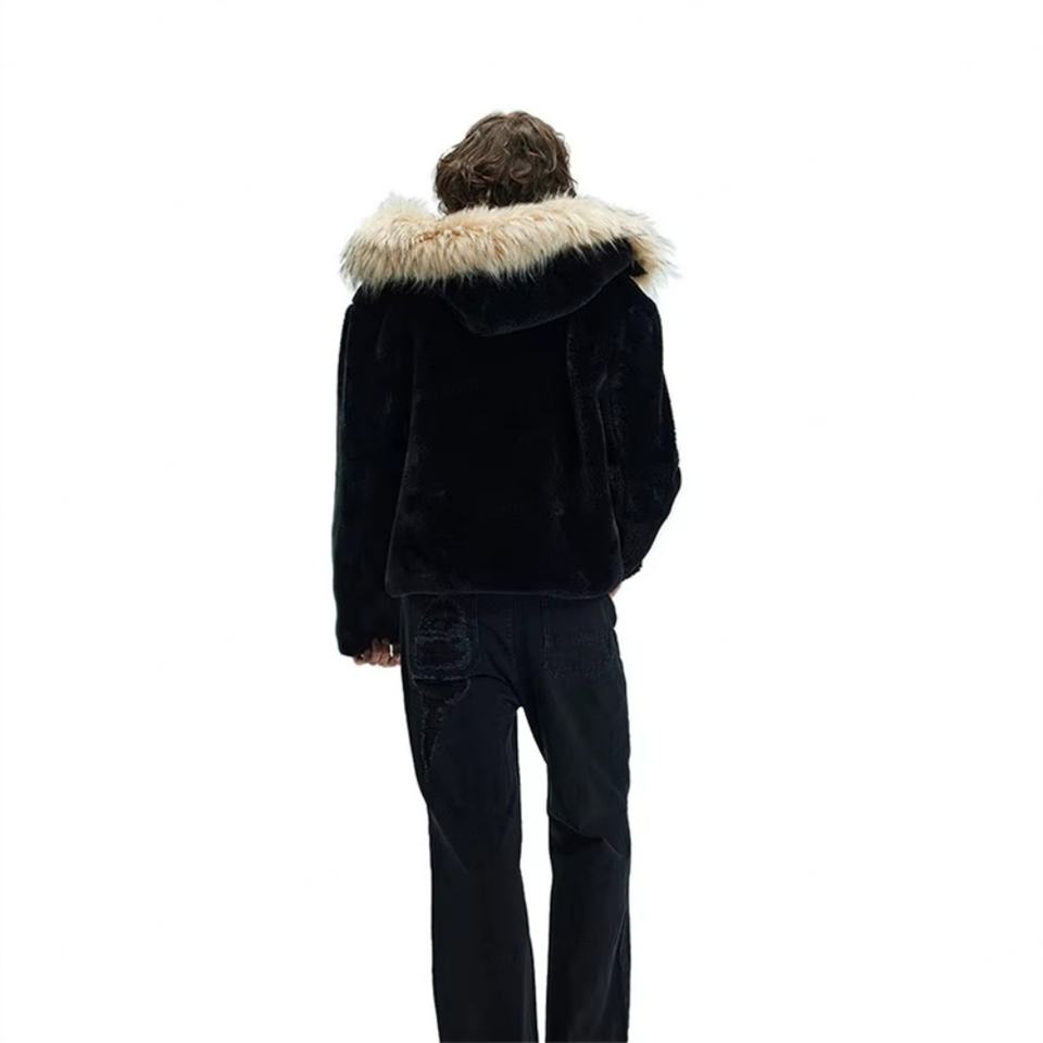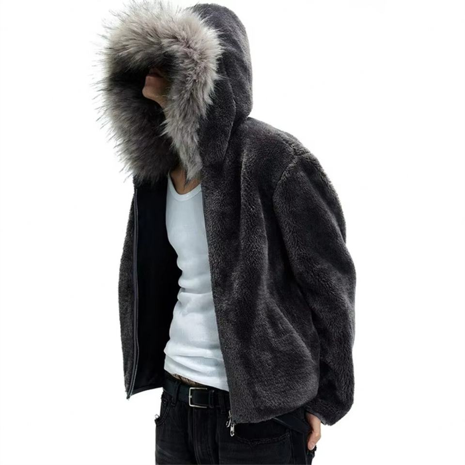 Veste oversize TOPSHOW en fausse fourrure avec capuche, couleur unie, douce, en sherpa, polaire, à fermeture éclair pour homme