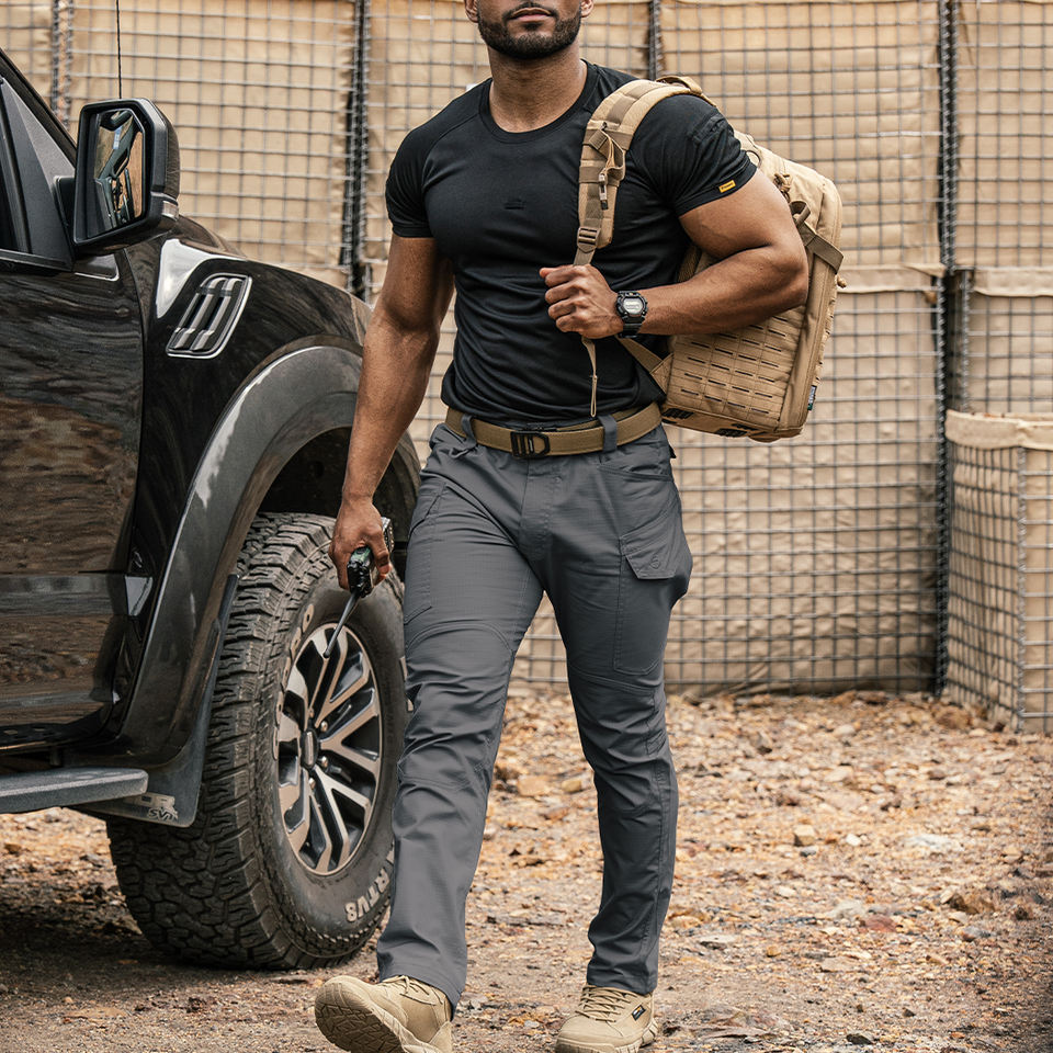 Pantalon cargo décontracté pour homme TOPTACPRO, gris loup, élastique, en toile de sport, coupe-vent, respirant, imperméable, fermeture éclair, pour tous les activités de plein air