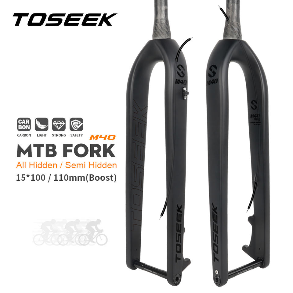 Fourche rigide en fibre de carbone TOSEEK Boost, frein à disque, 15*100/110, passage de câbles entièrement interne pour VTT
