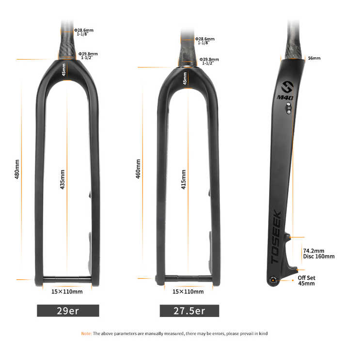 Fourche de VTT TOSEEK entièrement en fibre de carbone, fourche rigide 27,5/29 pouces, intégration axe traversant 15x110 mm, frein à disque, fourche de vélo Boost