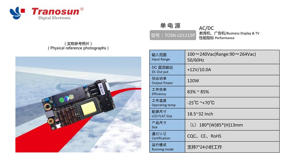 Alimentation AC-DC TOSN-1215P 120W | Solution d'alimentation à écran LCD | Convient aux téléviseurs de salle de conférence/hôtel
