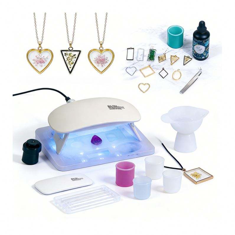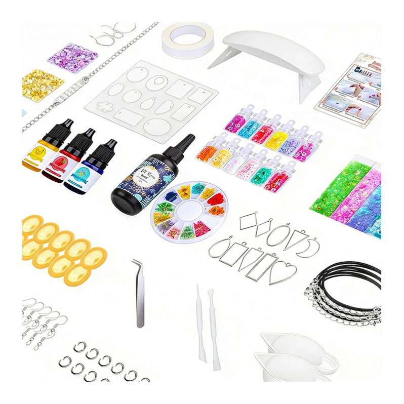 TOYSRUNNER Kit DIY de porte-clés en résine fait main, bijoux, lampe UV LED transparente, moules en silicone, paillettes, feuilles, fleurs, pendentifs