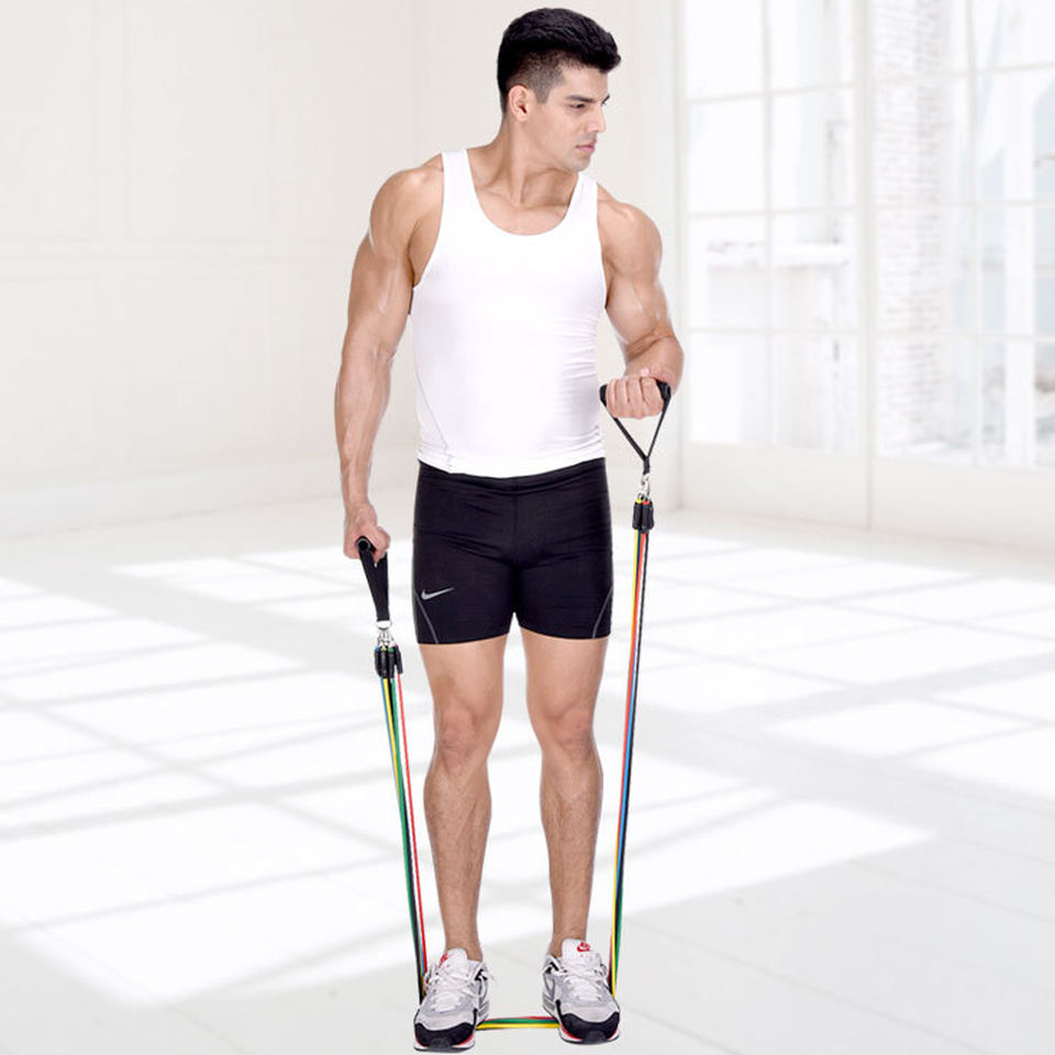 Ceinture élastique TPE Extenseur de fitness multi-force Corde de tension Dispositif d'entraînement des bras musculaires pectoraux avec sélection du type de boucle