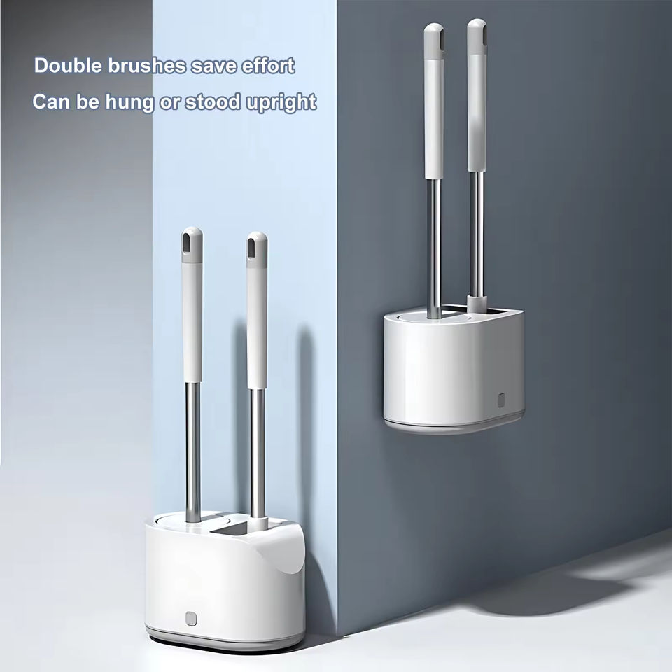 Ensemble de brosse de toilette avec manche en TPR, brosse de nettoyage en silicone 2 en 1 avec support pour salle de bain, brosse hygiénique pour cuvette de toilette