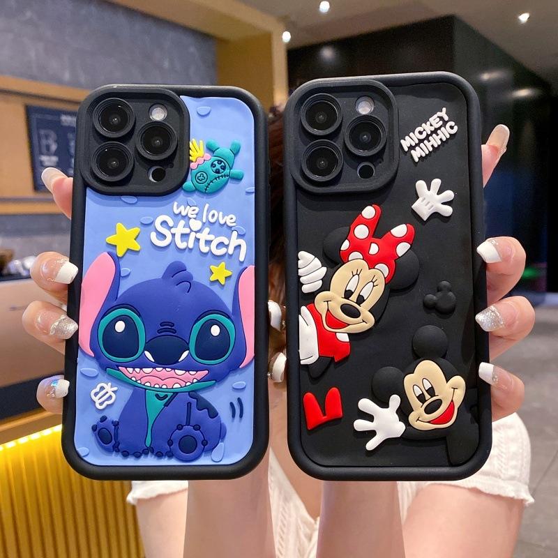 TPU Anti-Fall Smartphone Case for iPhone 12 13 Mini Pro Max Cartoon Lovely Mickey Stitch Creative Cover for Iphone 16 17 Custom