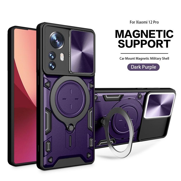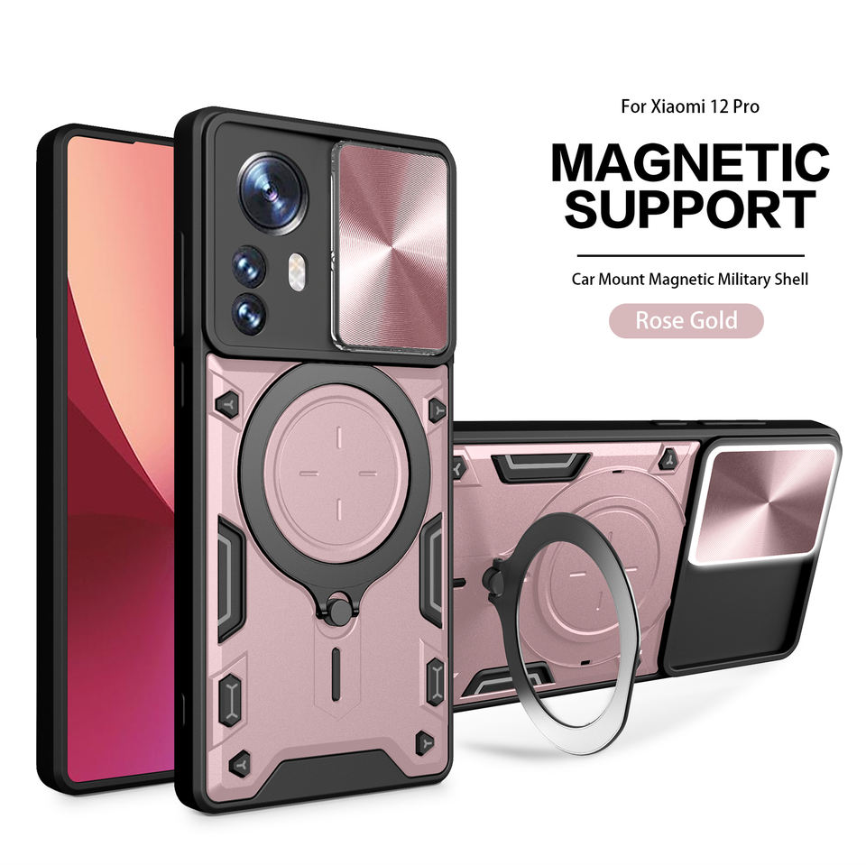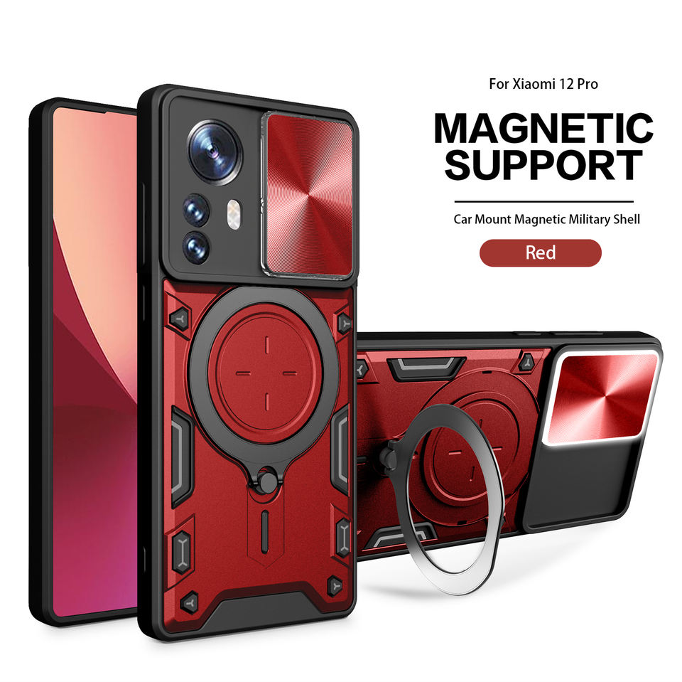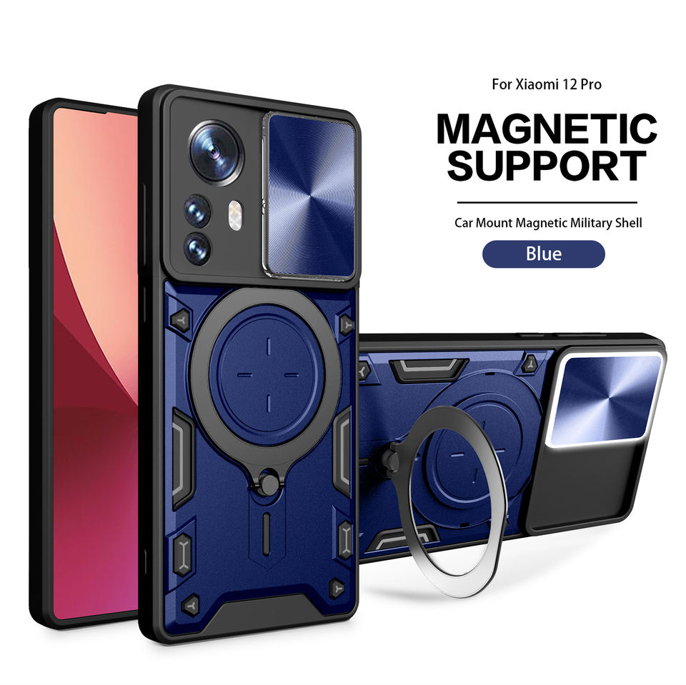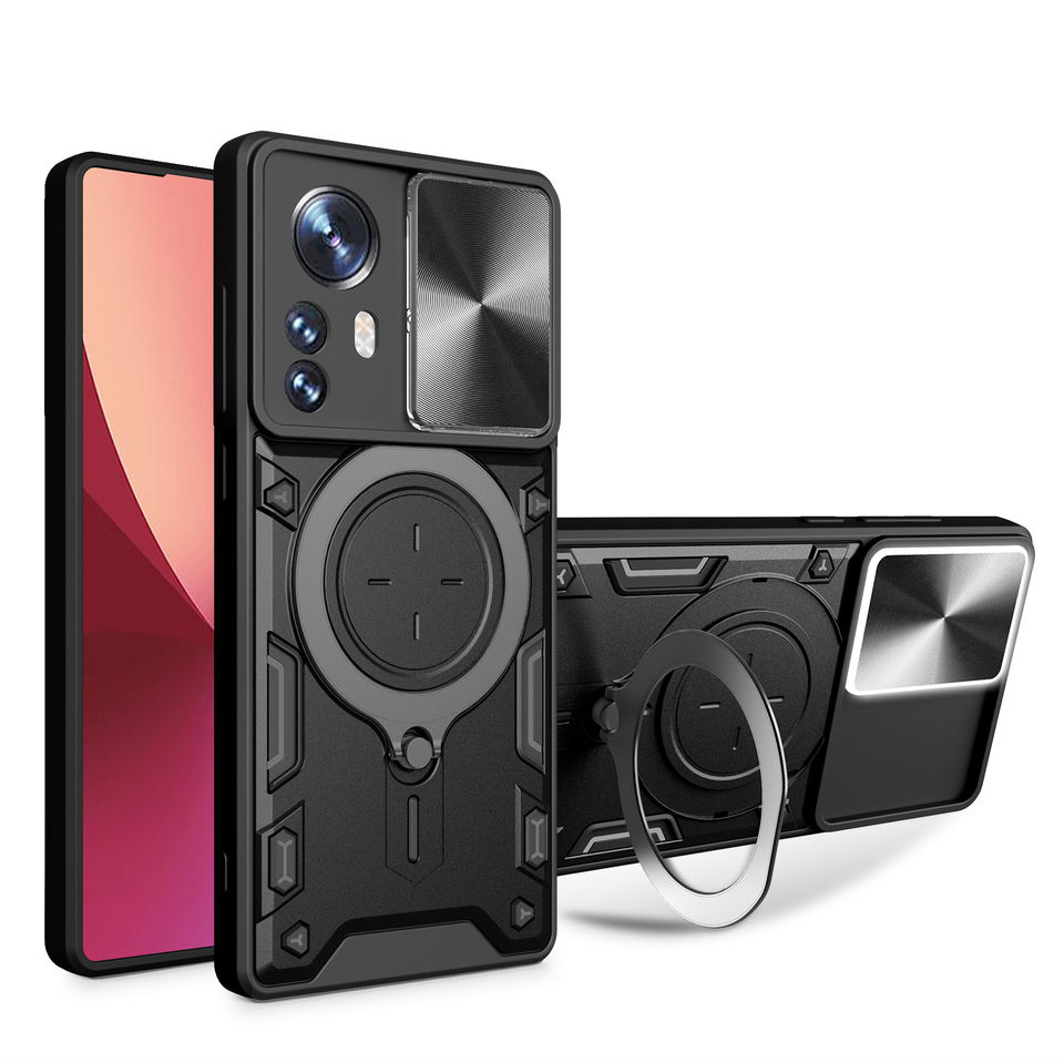 Coque de téléphone antichoc durable en TPU pour Xiaomi 12 Pro avec béquille à anneau magnétique et flash LED pour les appels entrants